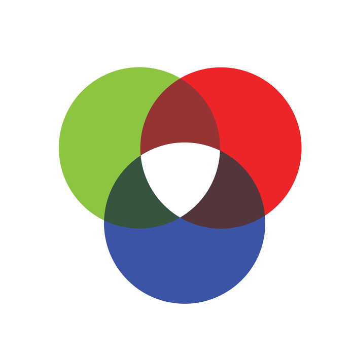 Identity for a television channel, dynamic logo with red, green and blue (RGB) or light colors